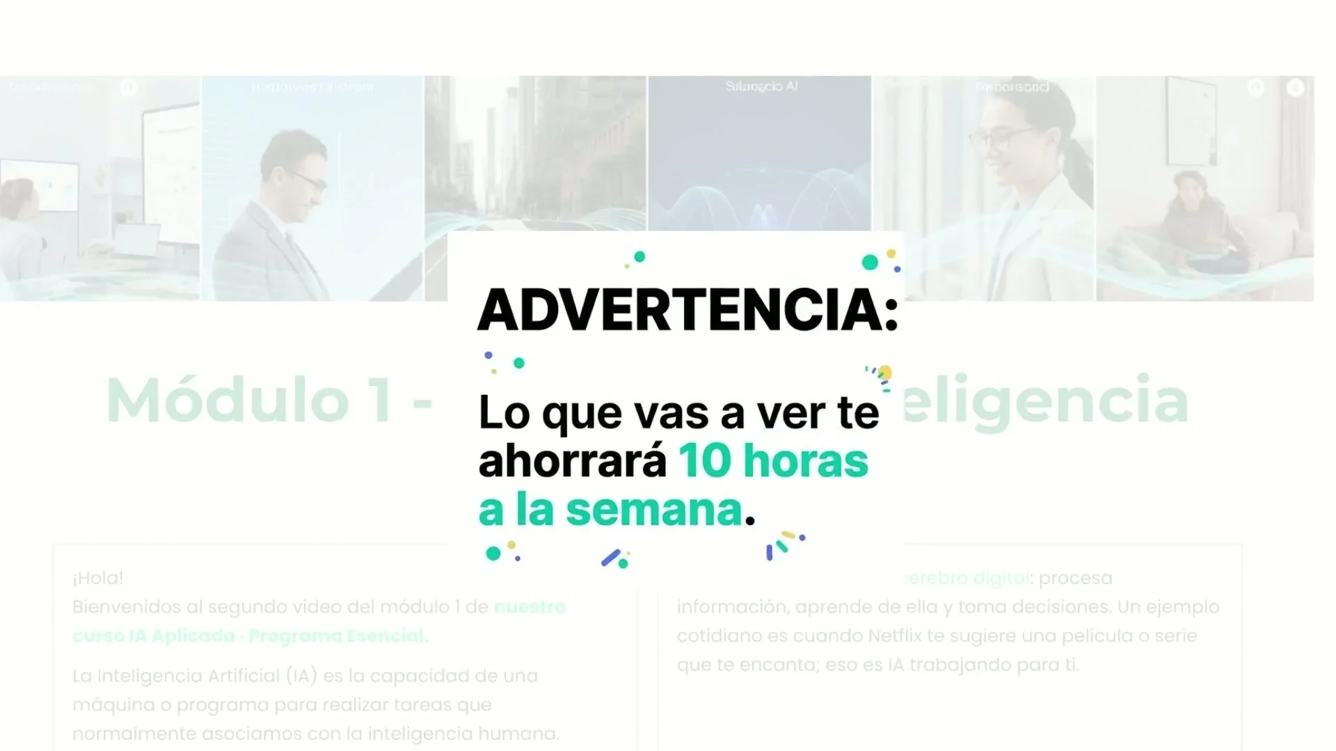 Lo que logras: Hablas con autoridad sobre qué es la IA, eliminando el miedo y uniéndote al 1.5% de profesionales que la utiliza sin errores.